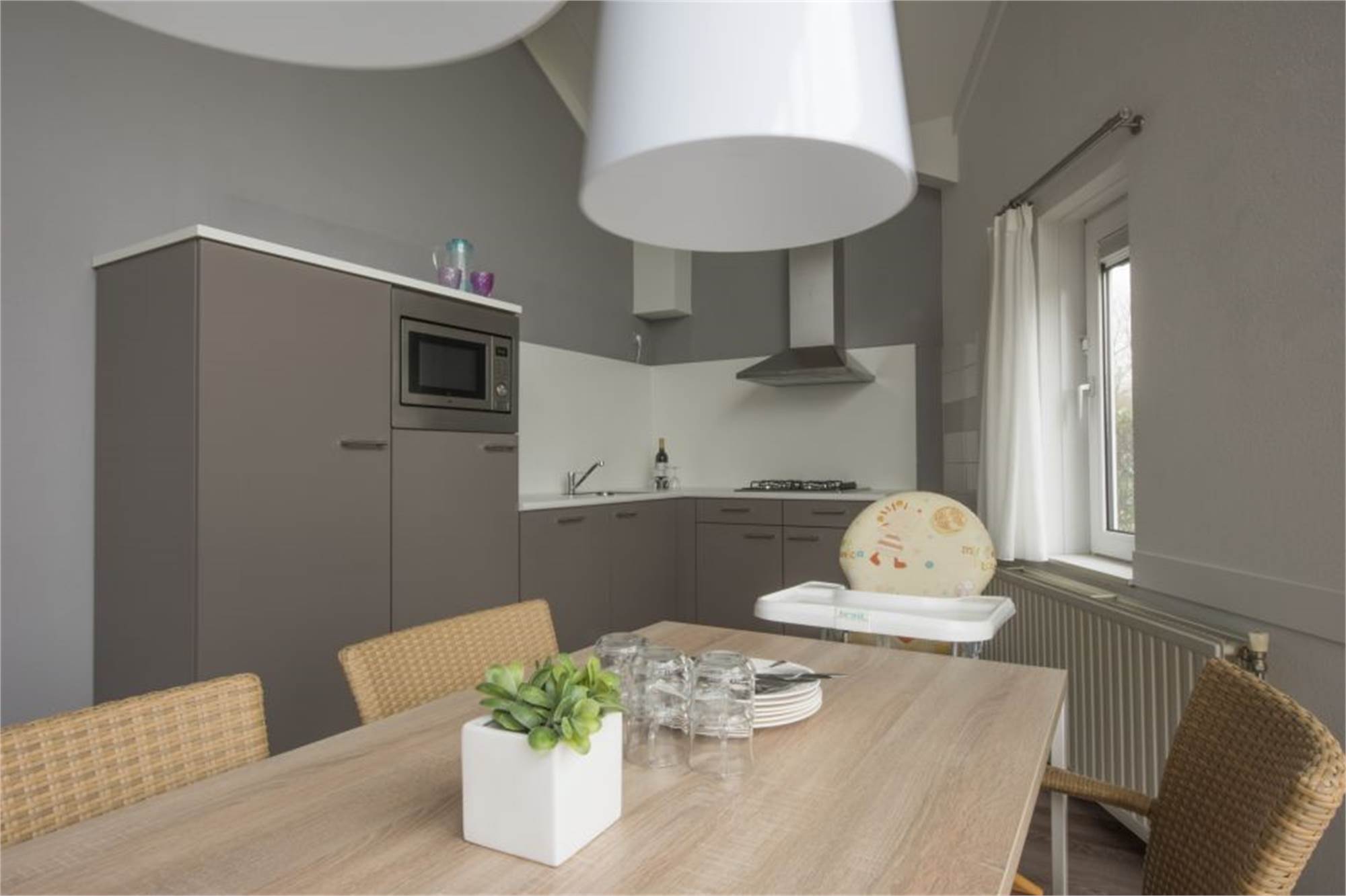 Kinderfreundlicher Bungalow für 6 Personen und ein Baby bzw. Kleinkind. Dieser Bungalow ist kinderfreundlich eingerichtet mit Kinderbettchen, Babywanne, Kinderstuhl und Laufstall. In der Unterkunft finden Sie ein gemütliches Wohnzimmer mit Sitzecke und Smart-TV. Die offene Küche ist mit Geschirrspüler, Kühlschrank mit integriertem Gefrierfach, Kombi-Mikrowelle und Kaffeemaschine ausgestattet. Die Unterkunft bietet insgesamt 3 Schlafzimmer: 2 Schlafzimmer mit 2 Einzelbetten und 1 Schlafzimmer mit 2 Einzelbetten und einem Kinderbettchen. Außerdem gibt es zwei Badezimmer und ein separates Gäste-WC im Flur. Im Außenbereich finden Sie einen schönen Garten, eine möblierte Terrasse und einen Abstellraum. Die Nutzung von WiFi ist gratis.